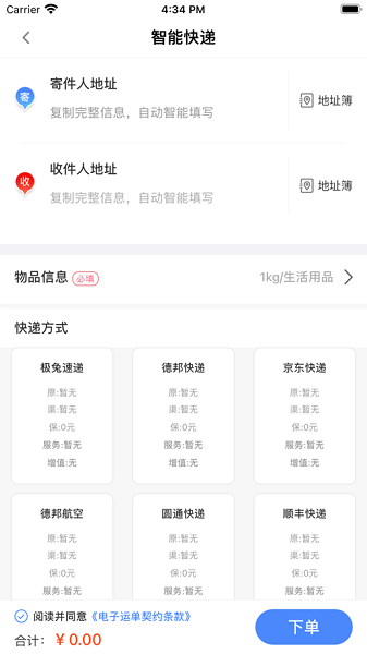 提供了线上的智能快递,帮助用户进行智能的寄快递