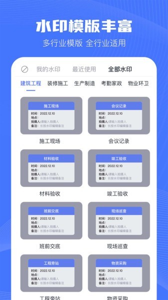 该应用提供丰富多样的水印模板,包括时间地点水印、相机水印时间等,满足不同用户的需求。