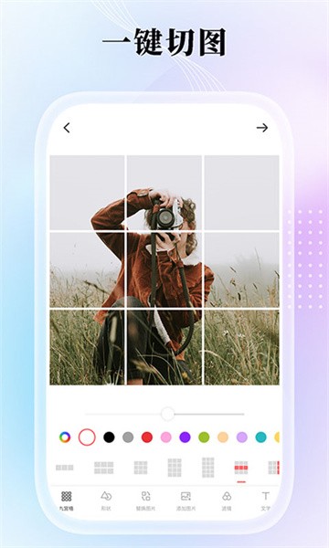 九宫格分图大师app是非常好用的一款帮助用户们快速分割图片的手机软件,在这里用户们能够将图片和照片快速的变成九宫格,让自己能够在多种情形下进行使用,还有多种裁剪p图的功能能够让用户们随意的调整自己的图片,超级的好用。