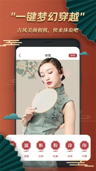 3.让你的照片换上有质感的古风滤镜,精美的头饰搭配,是好用的美颜相机软件;