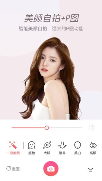 智能瘦脸、美白、美拍、去眼袋,展现自然美颜自拍效果。