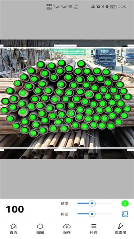 1、轻松一键拍照了解钢管数量,专业的材料工具,一键服务,完美的快速数出数量