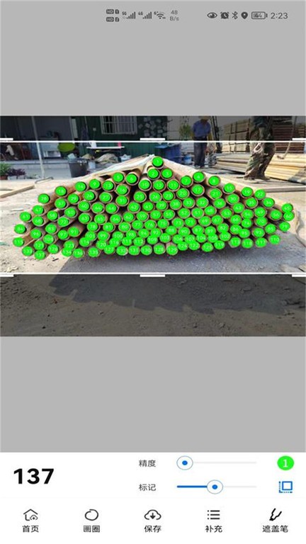 数钢筋安卓版手机拍照数钢管、钢筋、方管、方木、原木、盘扣轮扣、盘扣立杆、盘扣横杆、盘扣斜拉杆、轮扣立杆、轮扣横杆、工字钢、椭圆形、凹槽钢、D型钢、数珍珠、数筷子、数香烟、点人数等几十种物资。只需手机拍照,一秒全自动识别数量。