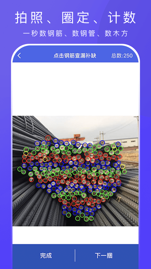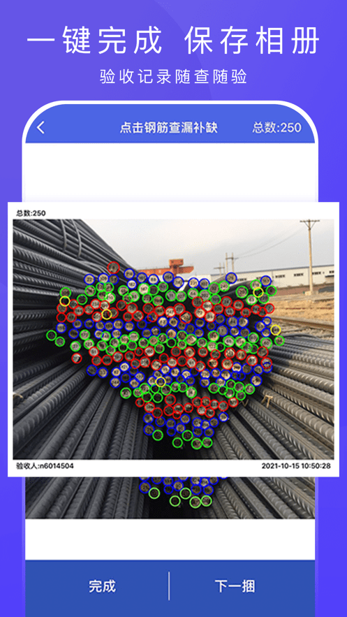 简洁的界面让你能更好的进行钢筋钢管清点,了解具体的数量,提高清点的质量,更方便;