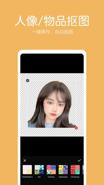 抠图照片编辑是一款简单实用的全自动抠图软件,一键抠人像,轻松换背景;抠出想要的图片元素,生成透明图,结合海量海报背景图,轻松制作海报!