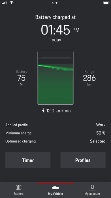 这个App分为“我的账户”、“导航”和“我的车辆”三个主要部分。你可以随时查看车辆状态(比如锁门情况、续航里程),还能远程控制开关车门、空调等。特别是对于Taycan车主来说,还有专属的充电功能,比如查看电池状态、规划充电路线,甚至可以设置定时充电。