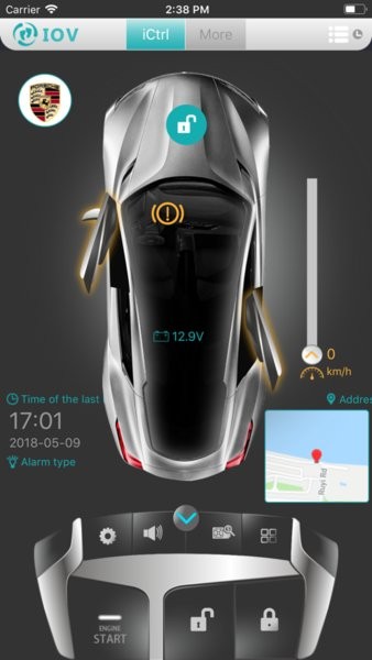 6.状态:显示实时的车辆行驶速度,车辆所在位置,车辆的设防、撤防状态,车辆启动状态,车门开关状态,还有各类报警提示内容。