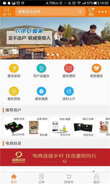 只要登录“农银e管家”平台,即可随时看到上游企业各类商品图文信息,可在线上直接选购商品、下单、支付结算,有利于自己订货或补货,实现24小时,随时、随地付款,不受银行实际限制,不排队,足不出户完成货款支付。
