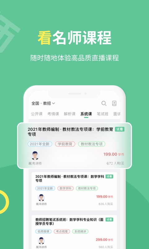 学员们可以刷刷题、听听直播课,教师招聘、教师资格证随身学,随时学。