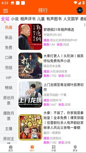 所有的小说都是免费的,有声的声音很有感情,很有代入感,非常有用。
