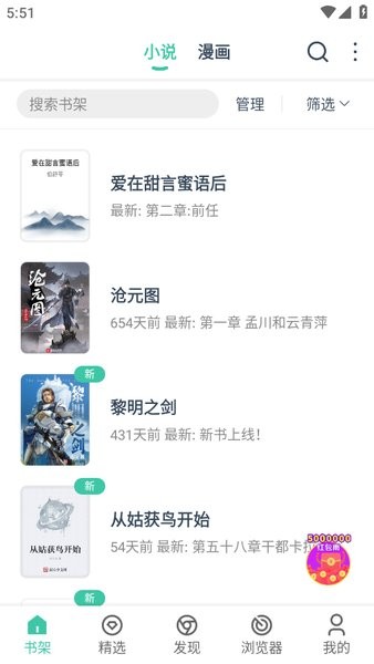 2.为您提供了非常不错的小说资源,你可以随时搜索你想看的任何东西,实时为你更新;