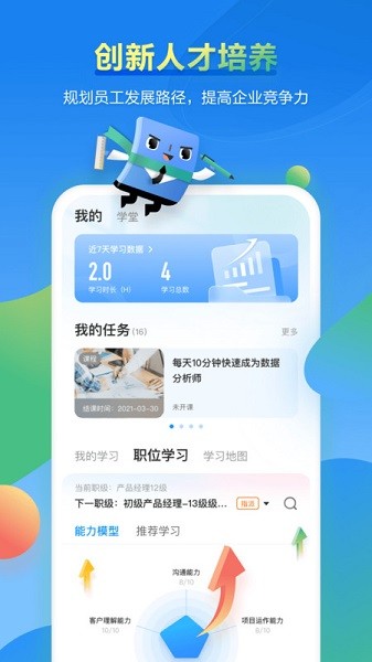 时习知app是华为公司旗下推出的企业培训教育软件,带来一站式服务,全程线上互动教学,高效培训学习,多样课程内容自由选择,还提供多功能考试,满足多场景考试需求,规划员工发展路径,创新人才培养,提高企业竞争力,降低企业运营成本!