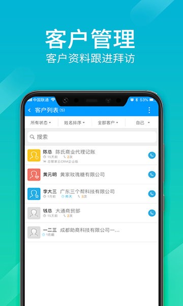 6.团队管理:公海客户管理,销售目标制定,随时随地督导团队业绩目标达成.