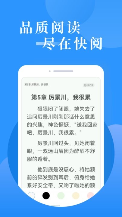快阅阅读是一款超级方便的小说阅读软件,里面收录了各种热门小说,男生女生分类很清楚,想看什么类型都能找到。最棒的是它免费就能用,不用花一分钱,而且更新特别及时,追书 totally 方便!界面设计也很友好,看起来舒服,晚上还有夜间模式,再也不怕眼睛不舒服了。