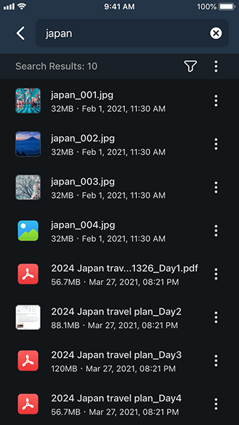 可同时搜寻单台或多台 NAS 上的众多文件。