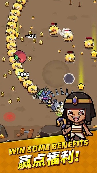 每只金猪价值1000金币,在战斗结束后,所有捕获的金猪将被折算成金币,作为奖励。快来挑战金币矿洞,体验高速捕猎的刺激感吧!