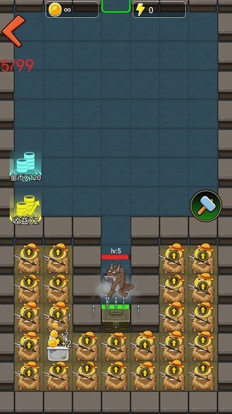 可以赚钱的设施有二,一是床,床是最基础的设施,每个房间必有一个,每秒获得1金币,升级翻倍,同时需要的金币,电力也翻倍,前提条件变换,二是矿,中期的主要资金的来源,铜矿8金币,银矿以上我不知道,因为炮台太猛,还没升级猛鬼就扛不住了~