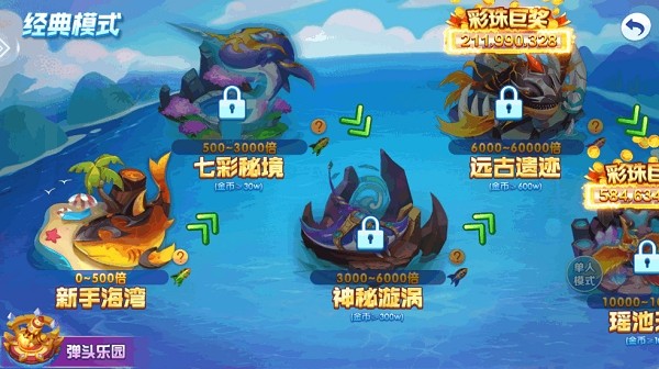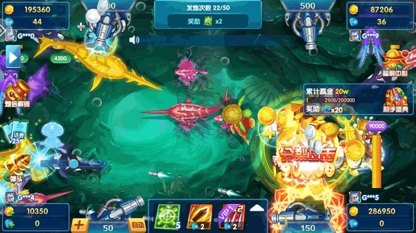 3、金币不多时,建议多捕获小鱼,慢慢积累金币,等到积累一定程度之后,一般鱼群也刚刚好出现,这个时候一定要把握好时机,将鱼群收入囊中,使自己的财富更进一步,然后把目标对准BOSS,一步一步往高处走。