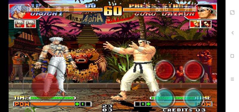 老拳皇的对决模式,玩家与玩家之间的实时格斗对战,每人操控3名角色接力上阵。