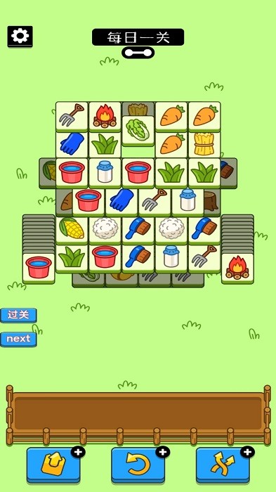 1、同层可以三消的就先消除同层,没有的话就需要查看下一层的物品,然后将需要的物品的上方的道具放置到槽中获得下方的道具。