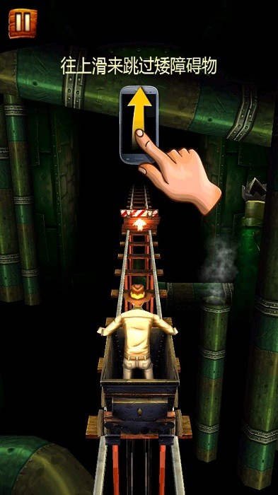 你乘坐着小矿车在轨道上奔跑,你能坚持多久?滑动你的手指,让小矿车跳动起来,并且收集更多的宝藏吧。
