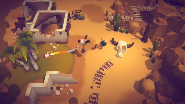 -- 采用经典的美式卡通风格塑造的游戏场景,斜俯的第三人称视角进行动作射击
