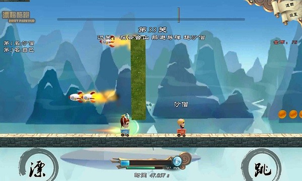 5、在跑酷游戏中加入了“漂移冲刺”“短冲”“连冲”等经典竞速技巧,更有独特的“风力加速”系统。