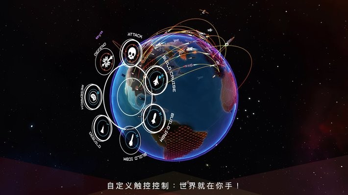 1、游戏的画面给人的感觉具有强烈的科技感,因为玩家是以上帝的视角俯视着地球,你的所有操作均在地球模型上面进行