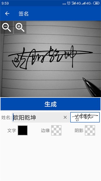 2、输入您的名字,快速生成免费字体签名,通过改变签名背景和颜色、字体等来生成独一无二的签名照片。