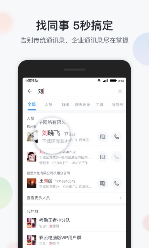 【云通讯录】全面整合企业/个人/好友的通讯录,完整组织架构,找同事只需要5秒。