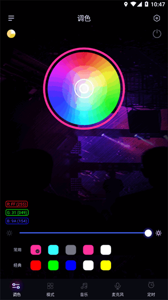 律动光控APP是一款超级实用的智能灯光控制软件,用它在手机上就能轻松操控各种灯具,调节亮度、颜色和色温,还能播放音乐让灯光跟着节奏跳动,简直太酷了!我最近也下载用了,真的觉得特别方便。你可以通过蓝牙或红外遥控连接灯带或灯具,随意切换不同模式,比如动态模式有几十种变化效果,单色模式可以调出各种好看的颜色,律动模式还能让灯光随着音乐摇摆,氛围感直接拉满。
