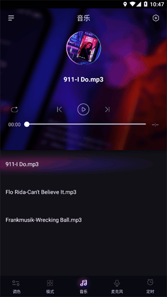 导入手机里面的歌曲,选择播放,灯光会随着播放歌曲有节奏跳动