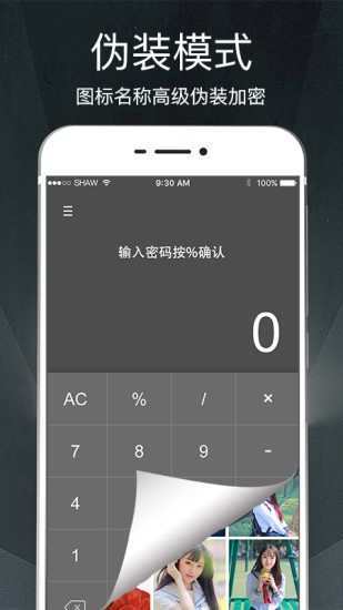 开启计算器模式后,打开看到的是真正可用于计算的计算器,不会看到真实被隐藏的私密相册照片视频,为你打造真正隐蔽的私密空间。以后再也不用害怕好友或你的那个TA缠着你输密码了哦