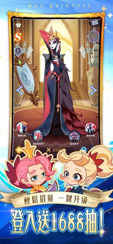 游戏玩法丰富,包括轻松的抽卡系统、一键升级功能以及rogue-like冒险模式。独特的分屏设计让团队组建更简单,离线挂机也能快速升级。此外,游戏揭示了童话角色的真实面目,比如“白雪公主”可能有毒心,灰姑娘其实有妄想症,剧情设定新颖有趣。