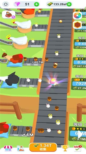 2、非常重要可以通过获取奖励扩大自己工厂的规模,购买更多流水线也不错体验一个有趣的经营模式很不错,提升下蛋的效率卖出更多。