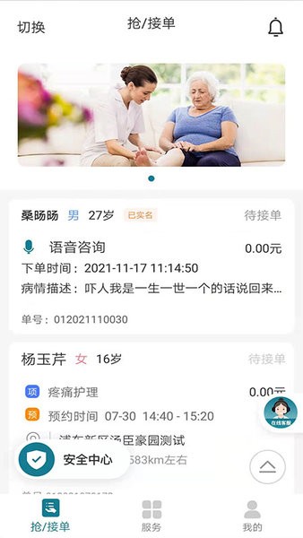 方便患者寻找专业的护士上门服务的app,这里可以在线上发送订单,会有各个专业的护士跟您预约时间进行上门服务,让患者享受便捷的服务。护士也能在这里查看自己的订单,查看每个患者的信息进行针对性的准备,还能在这里对酬劳进行提现,非常方便。