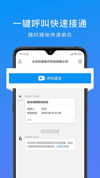 和缓平台提供院前咨询服务,在去医院就诊之前,医生会指导用户找到合适的科室及医院,帮助用户了解就医流程、解答疑问给出建议,省去了上网搜索查询的繁琐过程、高效快捷。