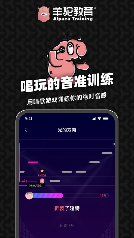 羊驼为音乐初学者提供实用又具有趣味性的音乐基础练习,利用AI声音测评技术,多维度评测个人唱歌水平,了解个人的唱歌薄弱项再进行针对性的训练。