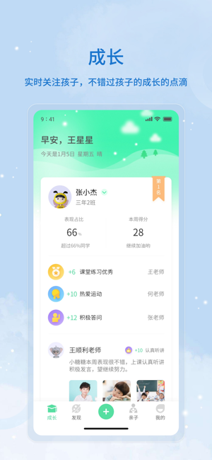 5、动态发现:实现高效的家校互通,消除老师与家长之间,单向与盲点式的沟通;