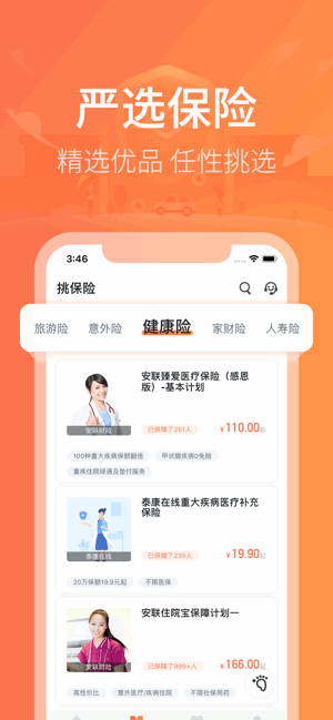 -- 汇集了国内外多家知名保险公司的旅游保险、意外保险精品,更有当期优惠产品。您可以根据销量、人气、价格、险种、人群等条件进行保险产品筛选,从中挑选最适合您的、性价比最高的保险。