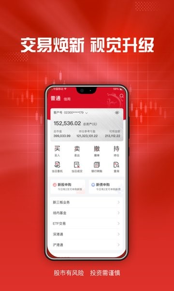 人性化的页面设计,更加便捷的操作体验让您投资体验从此变的简单。委托交易、理财产品认购等一应俱全。