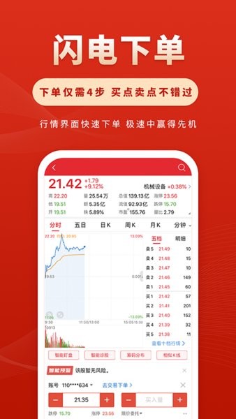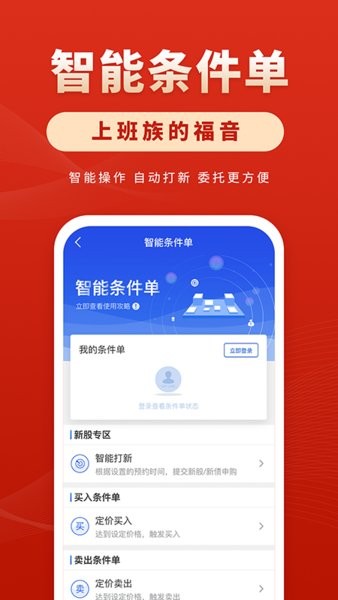 4.手机交易:新股申购,港股通,融资融券交易业务全支持,简单操作,快速上手,带给你不一样的业务体验;