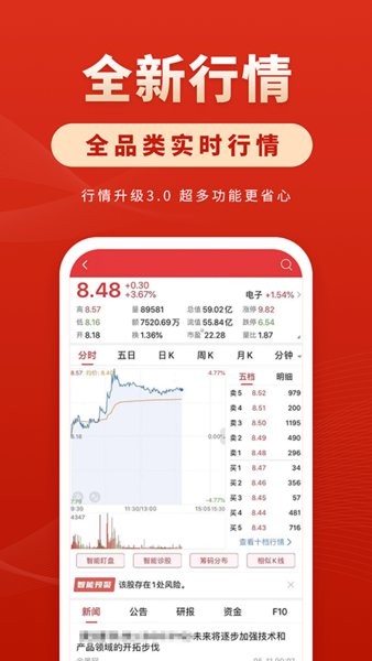 1.极速行情:全新界面设计,高颜值、速度快、更稳定;