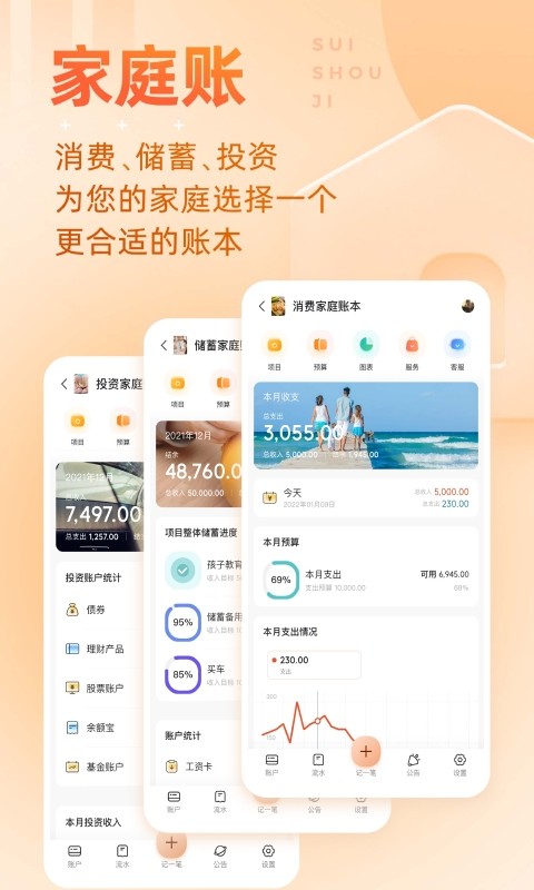 - 家庭账本:生活必备,分类齐全,还可以一家人一起记
