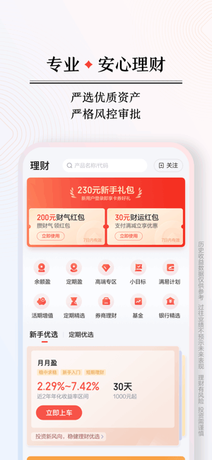 甄选持牌金融机构,严格筛选金融产品,覆盖多种金融产品种类,满足不同期限、不同风险偏好的投资需求。