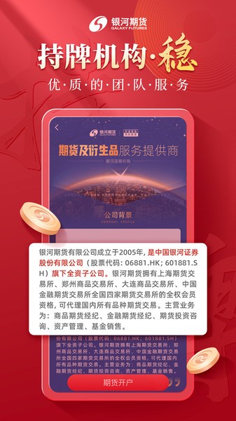 银河期货开户交易手机版是一款提供期货交易的金融理财服务平台,提供详细的教程操作指导期货开户交易,还有优质的团队服务,大量的期货资讯热点信息可以实时了解,把握市场行情动向,更提供感兴趣的投资产品随你选择,满足用户的投资交易需求!