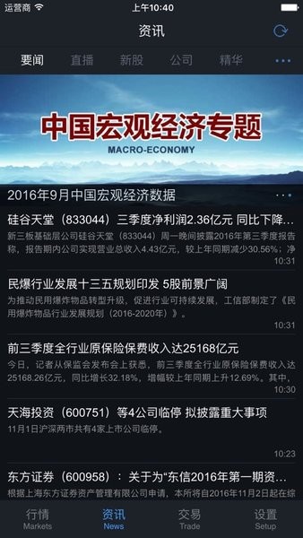 出示及时、丰富多彩的资讯,包含技术专业的宏观经济资讯和股票资讯信息。