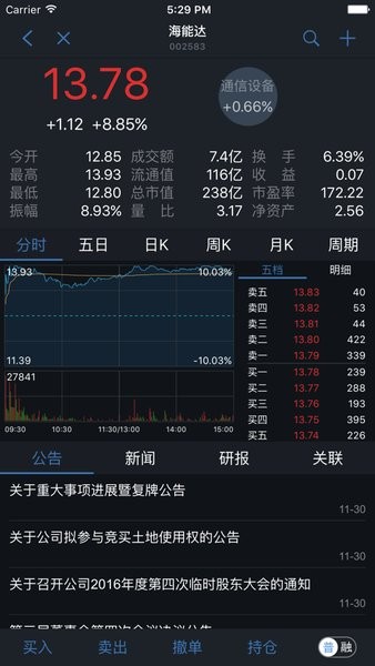 5.公告研报秒同步:个股公告新闻秒更新,同步发布中国证券及研究机构的研报。