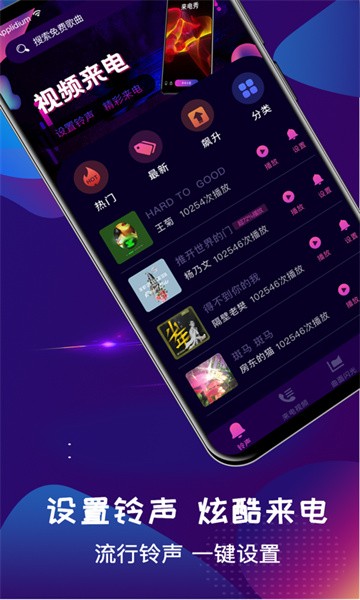 手机铃声大全,是一个集铃声、彩铃、铃声裁剪为一体的手机来电铃声视频大全软件。热门短视频来电秀、闹铃一键设置。