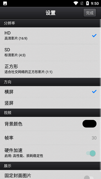 - Cute CUT 支持制作高清 (16:9) 和标清 (4:3) 电影。您还可以制作纵向和横向模式电影。